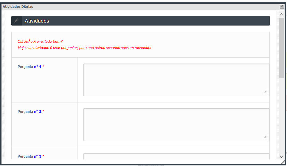 Você terá que responder ou fazer 05(cinco) perguntas diárias para inriquecer nosso banco de dados, desta forma aumentara o acesso ao nosso sites, gerando fluxo, e tornando nosso conteúdo procurado nos sites de busca, em respostas a perguntas dos internautas, trasendo novos clientes e anunciantes para Priples.Pagaremos 2% de sua recarga diariamente totalizando 60% do seu investimento ao mês no periodo de 12 meses pelo seu acesso,cooperação e divulgação.
